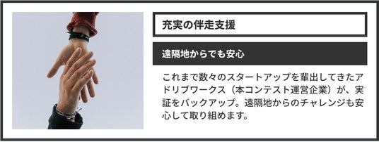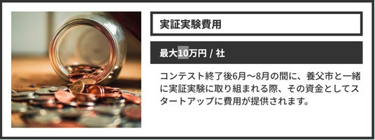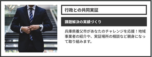 国家戦略特区・兵庫県養父市では、中山間地域における様々な地域課題の解決を目的としてビジネスプランコンテストを開催します。このコンテストでは、課題解決をもって地域の産業活性化を図るビジネスプランを募集し、受賞者には実際に地域で実証実験を行う支援を行います。 - 募集テーマ|地域課題を解決することで産業活性化を図るビジネスプラン - 応募資格 |下記1.~4.の条件を全て満たす方 1. 2025年6月22日(日)午後に開催されるコンテスト(会場:神戸市内)に参加できる方。 2. 受賞後には養父市と共に実際に実証実験に取り組める方 3. 暴力団関係者等、支援内容が社会通念上適切ではないと市が判断するものでない方。 4. その他、法令を遵守している方。 ※法人・個人・グループ(任意団体)、どなたでも応募可能です。 - スケジュール ・応募期間 |2025年5月18日(日)23:59まで ・書類審査 |2025年5月23日(金)までに結果をメールでご案内(8名程度) →書類審査通過者のブラッシュアップ期間|2025年5月26日(月)~6月13日(金) ・コンテスト当日|2025年6月22日(日)午後 / 会場:神戸市内(予定) 審査員:大林賢一養父市長ほか、外部有識者数名を予定 ・実証実験期間 |2025年6月23日(月)~8月31日(日) 実証の実施に向けては、養父市賞を受賞された方の特典で、受賞者と要相談。養父市賞の受賞特典