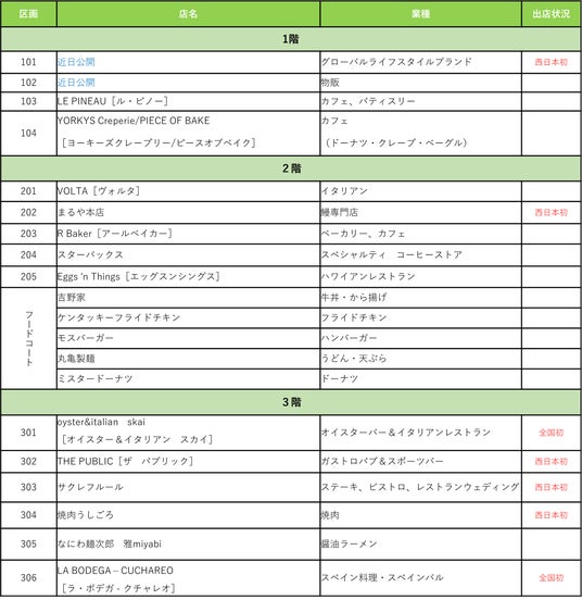 ※上記2店舗は出店者等との秘密保持契約により、現段階では非公開としています。