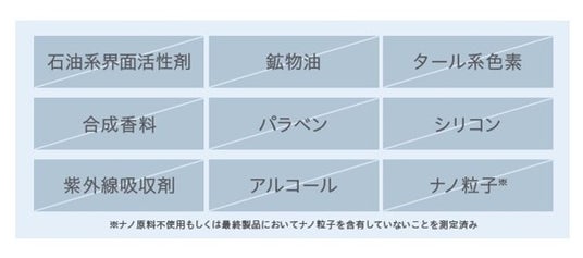 天然由来成分100%にこだわり、下に挙げた9つの成分は使用していません。