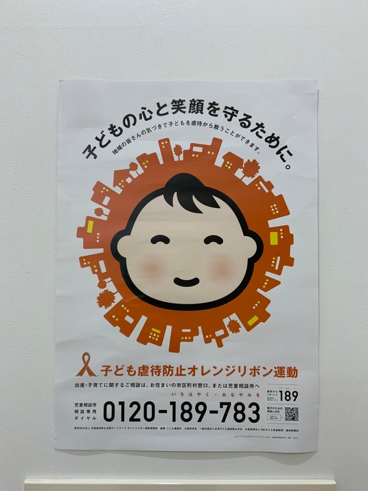 待合室に専用のスペースを設け、オレンジリボン運動に関する情報や子育て支援のリソースを提供、これにより、来院する患者さんやその家族に対して、子ども虐待防止の重要性を継続的に啓発。
