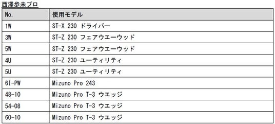 「今年からミズノブランドアンバサダー契約をすることになりました、西澤歩未です。ジュニア時代から使用しているミズノのクラブでこれからのツアーを戦うことができるのがとても光栄です。これからはミズノブランドアンバサダーの一員として活躍できるよう頑張りますので応援よろしくお願いいたします。」