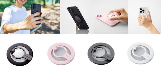 指にぴったりフィットして安定!スマートフォンの落下を防ぎ、スタンドとしても使えるスマホリング 12製品を新発売
