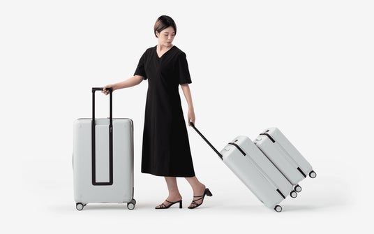 DOTSシリーズは、移動中のストレスを軽減し、より快適な旅の自由を叶えることを目的に開発された、モジュール式・マグネット連結型スーツケースです。大小2つのスーツケースをマグネットでシームレスに連結・分離できる構造を採用し、片手での操作が可能に。もう一方の手が自由になることで、スマートフォンを使ったナビゲーションや、荷物の出し入れなども移動中にスムーズに行うことができます。