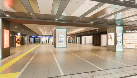 (3)コンコースの床、壁、天井も合わせてリニューアルを行い、新たな広告スペースを設置しました。