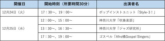 アーティスト、神奈川大学生がクリスマス気分を盛り上げる音楽ライブをお届けします。