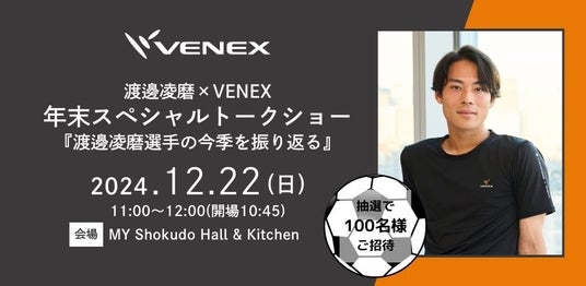 リカバリーに関するサービスや商品を開発する株式会社ベネクス(所在地:神奈川県厚木市、代表取締役:中村 太一、以下、当社)は、2024年12月22日(日)日本橋エリアにて、サッカーJ1リーグで活躍する渡邊凌磨選手が「今季を振り返る」をテーマにトークショーを開催します。イベント開催を記念して本年1月に発売し、大好評となった当社と渡邊凌磨選手のコラボリカバリーウェア『【渡邊凌磨×VENEXコラボ】 REFRESH(リフレッシュ)セットアップ』が限定復活。当日の参加者限定で、トークショー後、特別販売会を実施します。