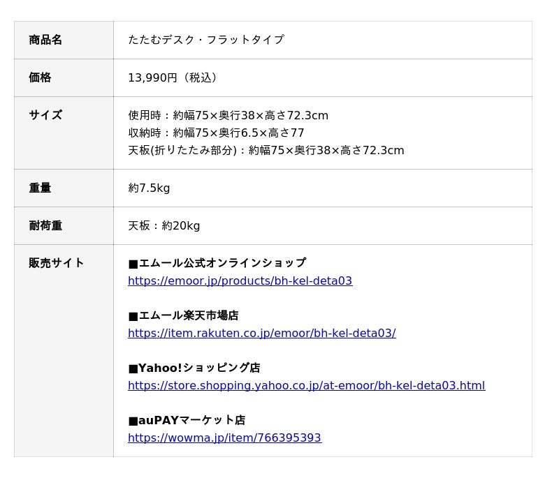 畳めば約65mmの超極薄に。収納を前提に設計されたフルフラット構造の折りたたみデスク【たたむデスク・フラットタイプ】が新登場!~ふだんは希薄な存在感。必要なときにだけ十分な使い心地~