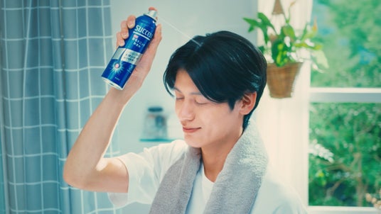「サクセス薬用育毛トニック」(医薬部外品)を使った時の気持ちよさと、男性の生き生きとした表情をラストシーンで描いています。