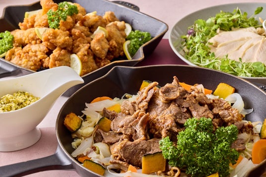 シェフズライブキッチン名物 プレミアムローストポーク(ランチタイムのみ)/シェフズライブキッチン名物 プレミアムローストビーフ(ディナータイムのみ)/ザンギ唐揚げ ラヴィゴットソース添え/北海道産サルシッチャ・三元豚・メルゲイツのポトフ/北海道産ポテトニョッキのイモ餅風ミートソースグラタン/ジンギスカン