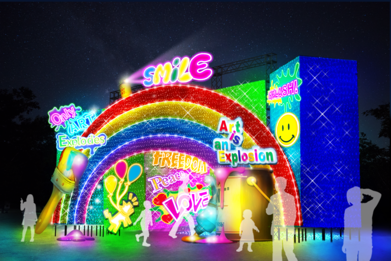 今回のテーマは「イルミネーション×アート」。エリア毎に光のアートを楽しんでいただくと共に、会場全体が美術館になっているかのような、来場者が“光の中に入り込む”特別なひとときを演出します。 今回の地上絵は、モナリザやムンクなどの有名絵画をポップに構成することで、「芸術をもっと身近に」笑顔(SMILE)と愛(LOVE)…