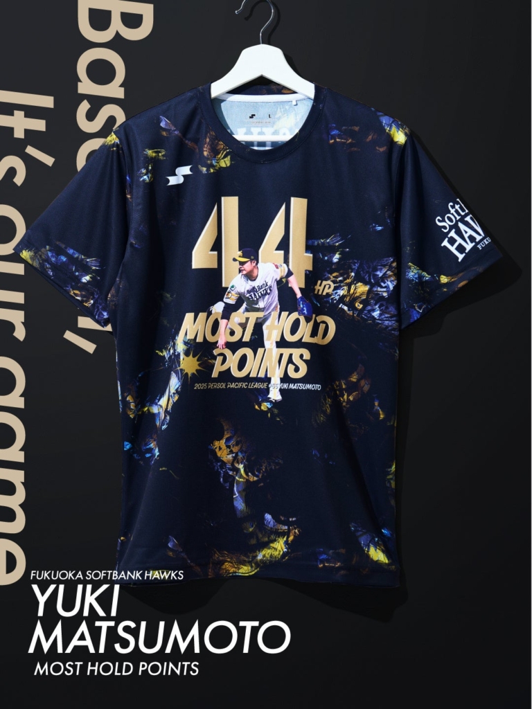 【SSK限定】ホークス松本裕樹「最優秀中継ぎ投手」獲得記念Tシャツが登場!躍動する鷹とタイトルロゴをデザイン!