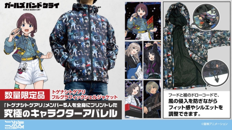 アニメ『ガールズバンドクライ』数量限定グッズ12/11(木)18:00予約開始!二次元コスパより「フルグラフィックシェルジャケット」が登場【株式会社コスパ】
