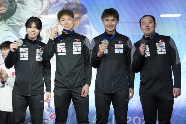 公益社団法人日本フェンシング協会ニューシーズン連続でメダル獲得の快挙! 現地時間 2026年1月11日(日)にフランス/パリで開催された、フェンシングワールドカップにて、男子フルーレ日本代表チーム(松山 恭助/まつやま きょうすけ/株式会社JTB、飯村 一輝/いいむら かずき/慶應義塾大学、永野 雄大/ながの ゆうだい/NEXUS FENCING CLUB、西藤 俊哉/さいとう としや/株式会社セプテーニ・ホールディングス)が銅メダルを獲得しました。