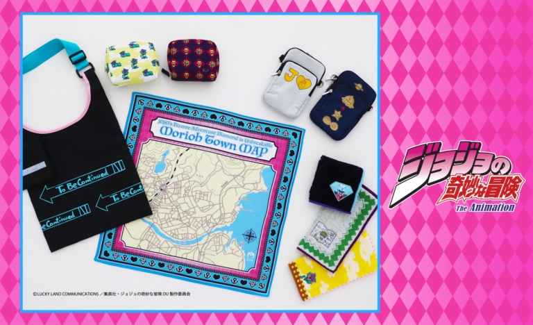 アニメ『ジョジョの奇妙な冒険 ダイヤモンドは砕けない』特別企画「杜王町」のマップハンカチや「ストレイ・キャット」のポーチなどキャラクターの世界観をまとう雑貨アイテムが登場!
