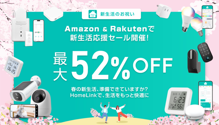 株式会社リンクジャパン~国内サーバー運用のホームIoTプラットフォームで、暮らしをよりスマートに~ 生活が切り替わる春に向けて、2014年創業の日本発のスマートホーム専門企業である株式会社リンクジャパン(本社:東京都港区)は、ホームIoTプラットフォーム「HomeLink」対応製品を対象に、Amazonおよび楽天市場の各プラットフォームにて順次、「新生活応援セール」を実施いたします。新生活のスタートに合わせ、スマートホーム導入を検討される方にとって最適なタイミングとなり、絶好の機会をぜひお見逃し…