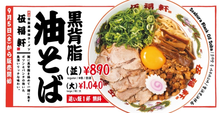 無料のライスで「追い飯」まで楽しめる!伍福軒から新商品『黒背脂 油そば』が登場