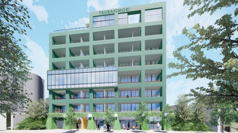 株式会社拓匠開発THE TSUBAKIMORI Hotel & Residence外観パース。