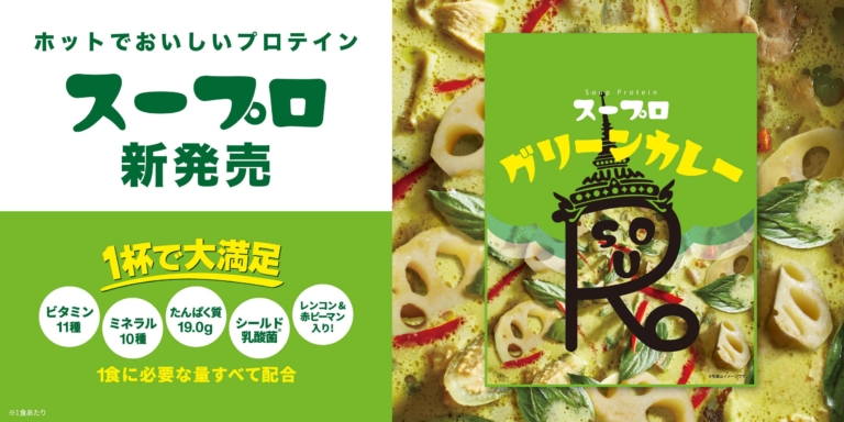 今度は「グリーンカレー」!暗闇フィットネス発のプロテインスープ「スープロ®」にクリーミーで本格的な新作がフィールサイクルに登場!