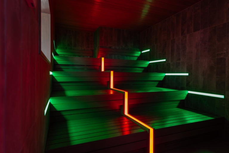 ライン照明が印象的な「Sauna 1」温度の異なる水風呂