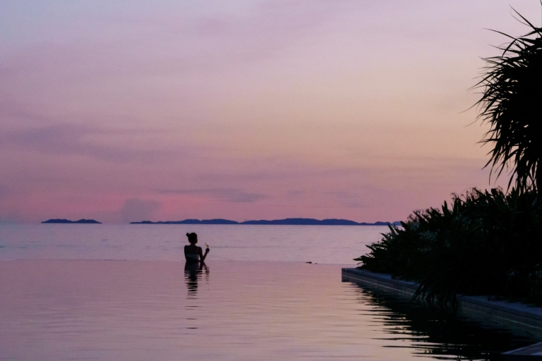 星野リゾート~あたたかなインフィニティプールでのひとときや海を臨む客室での特別朝食、貸切クルーザーでのホエールウォッチングなど、星のや沖縄だけのラグジュアリーステイ~ 水平線に沈む美しい夕陽を眺めるインフィニティプール
