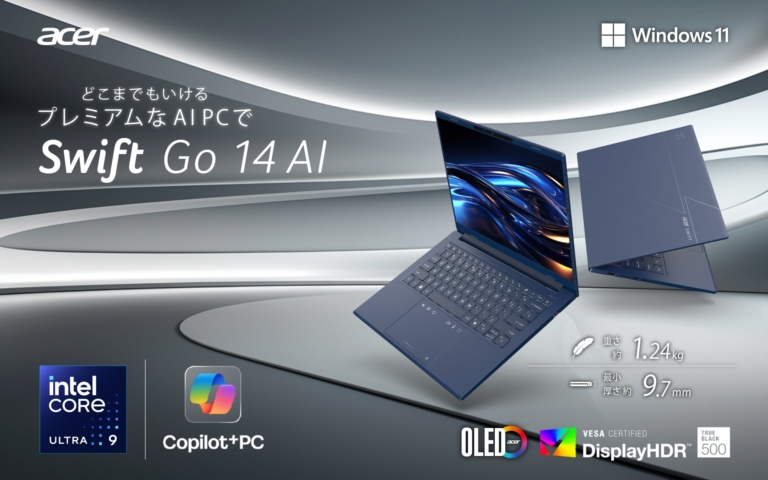 最薄部9.7mm!持ち運び最強のAIノートPC「Acer Swift Go 14 AI」本日発売!Core Ultra 9搭載の超軽量スリムボディに驚愕のAI機能と23.5時間バッテリー