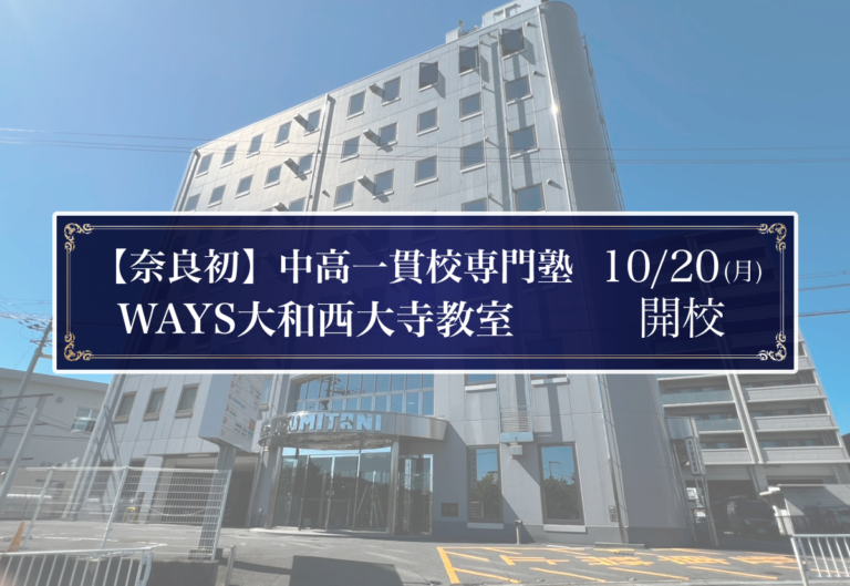 【奈良県初】東大寺・西大和も徹底サポート!中高一貫校専門「個別指導塾WAYS 大和西大寺教室」10月20日(月)新規開校!