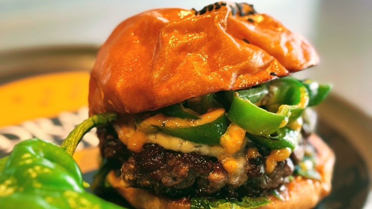 株式会社PADDLE京都・南丹市の北井農園から仕入れる柔らかく甘い万願寺とうがらしと、コクと深みのあるガーリックマヨネーズ&ブルーチーズが相性抜群。地産地消で京都を元気に! 京都で3店舗を展開する「DRAGON BURGER」(運営:株式会社PADDLE)は、京都の夏野菜「万願寺とうがらし」を主役にした新商品「万願寺BLUE」(1,800円・税込)を、2025年8月1日(金)から期間限定で販売します。 ロンドンでベストバーガーの受賞歴を持つシェフ、アダム・ローソン氏が、京都府南丹市の北井農園…
