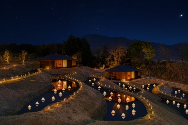 【由布院の冬絶景】界 由布院が贈る「棚田冬灯りやつがい」12/15スタート!中津和傘100本の幻想ライトアップと地酒&「せんべいディップ」の晩酌!