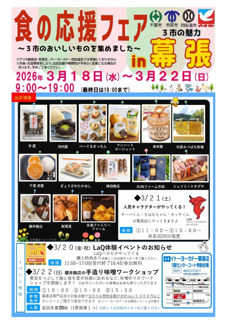 【幕張】3市の“おいしい”がイトーヨーカドーに大集合!「食の応援フェア2026」開催。味噌作り体験やチーバくんとの撮影会も!