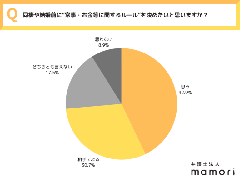 弁護士法人mamori結婚前の話し合いで未来は変わる?令和のカップル・夫婦の「取り決め意識」を徹底調査 “同棲・結婚における取り決め”に関する意識調査より 「結婚は愛があれば大丈夫だと思っていたのに、生活が始まると価値観の違いに戸惑う―」