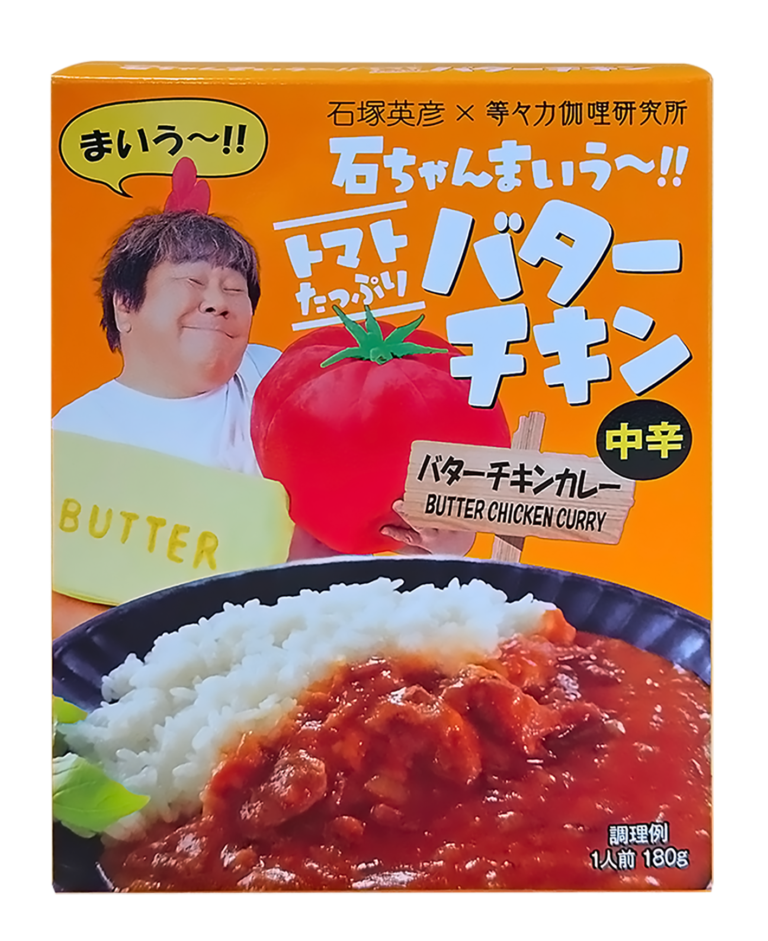 “石ちゃんのこだわりが詰まった”レトルトカレー! 石塚英彦×等々力伽哩研究所 コラボシリーズ3品目が新登場 「石ちゃんまいう~!! トマトたっぷりバターチキン」中辛<バターチキンカレー>