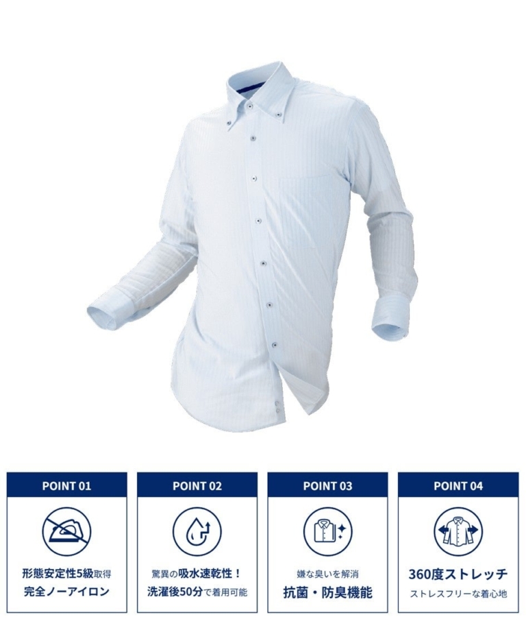 「i Shirt」は、“科学で着るを変えていく”をテーマに企画・開発された商品で、完全ノーアイロン※2機能とらくらく360度ストレッチが特長です。シワになりにくく、夜に…