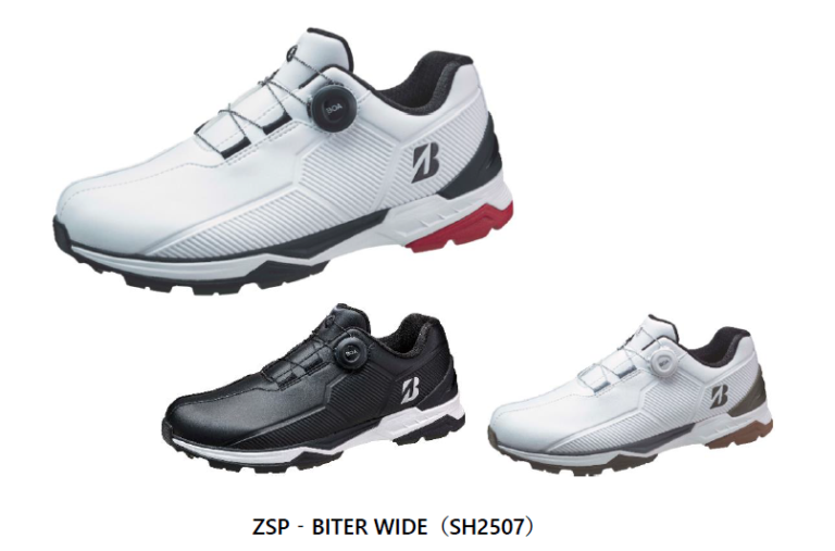 ブリヂストンスポーツ株式会社~高グリップアウトソールを搭載した4Eタイプのスパイクレスシューズ~ ブリヂストンスポーツ株式会社は、“幅広甲高でもスポーティなスパイクレスシューズを履きたい”というゴルファーのニーズに応えた、幅広甲高設計で高いグリップ力を追求したスパイクレスシューズ『ゼロ・スパイク バイター ワイド』(SH2507)を、9月18日に発売します。価格はオープンです。