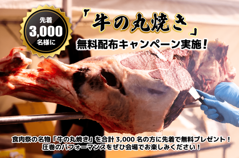毎年大好評の牛の丸焼きエリアが登場いたします!イベント期間中の3日間、毎日1,000名様に牛の丸焼きをその場でカットし、無料でプレゼントします。