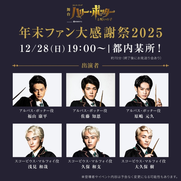 舞台『ハリポタと呪いの子』総観客数130万人突破!豪華キャスト登壇「年末ファン大感謝祭2025」開催決定!