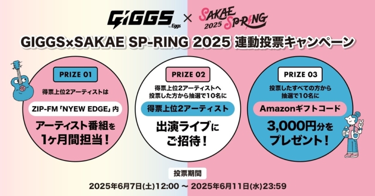 【SAKAE SP-RING 2025】出演アーティスト投票キャンペーン実施!Eggs発ライブプラットフォームGIGGS新機能「お目当て」を使用した投票でアーティスト、投票者へスペシャルプレゼント!