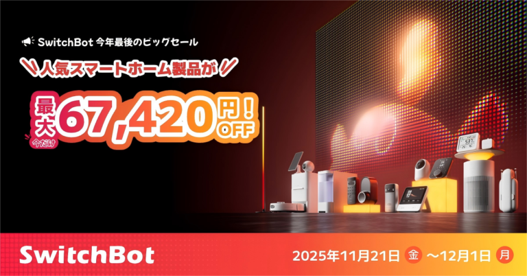 SWITCHBOT株式会社11月21日(金)~12月1日(月)の期間中、AmazonおよびSwitchBot公式サイトにてブラックフライデー開催。新製品から定番アイテムまで人気製品が勢ぞろい&特別価格で登場! IoT・スマートホーム事業を展開する「IoTデバイスNo.1ブランド(※2022年11月 家電Biz調べ)」のSWITCHBOT株式会社(本社:東京都渋谷区)は、2025年11月21日(金)~12月1日(月)の期間中、Amazon公式ストアおよびSwitchBot公式サイトにてブラックフラ…