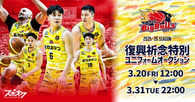 スポオクにて、岩手ビッグブルズが2025-26シーズン【復興祈念特別ユニフォーム】オークションを開催