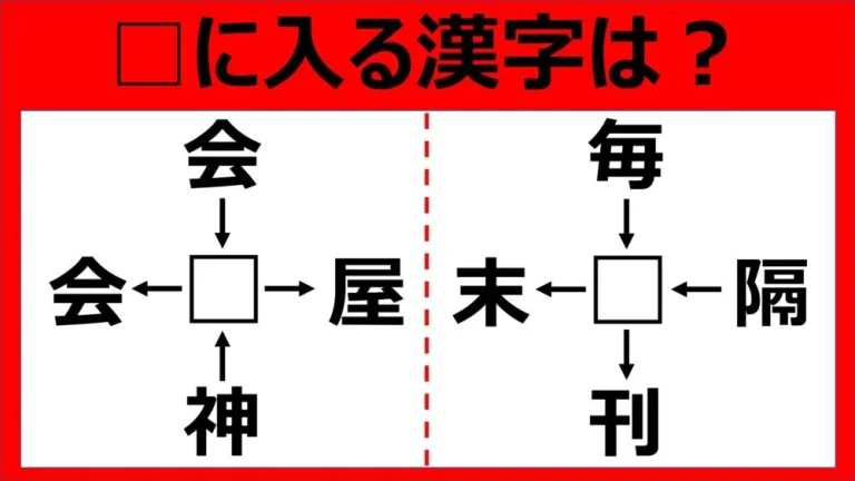 【漢字パズル】超難問!? 会□、□屋、神□、□会 □に入る漢字は…?