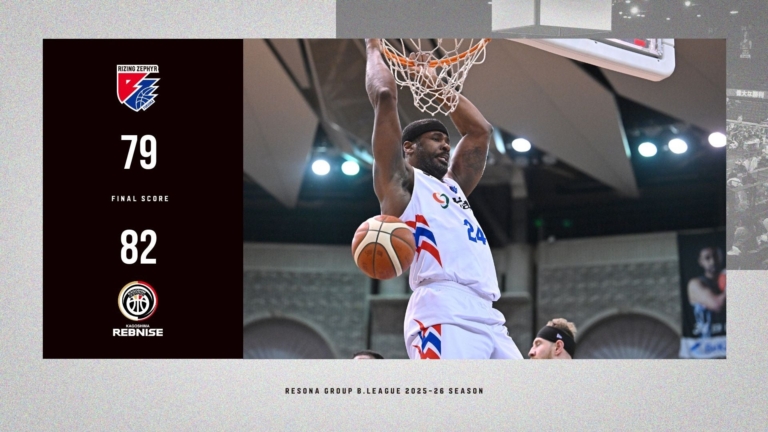 ライジングゼファーフクオカ株式会社2026年4月5日(日)に開催した、りそなグループ B.LEAGUE 2025-26 シーズン【ライジングゼファーフクオカ vs.鹿児島レブナイズ】戦は、“福岡 79-82 鹿児島”で福岡の敗戦となりました。 【試合結果】