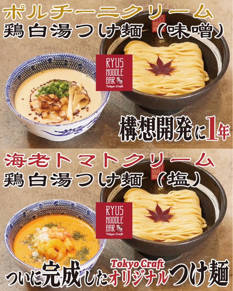 麺の常識を超えた!【RYUS Noodle Bar】構想1年のポルチーニクリーム&オマール海老トマトの鶏白湯つけ麺2種発売!
