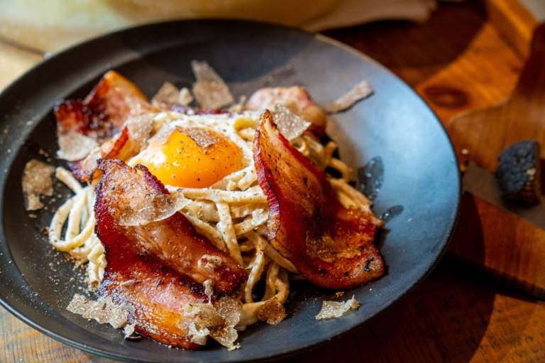 トリュフ香る!【恵比寿 CASCINA】濃厚カルボナーラに厚切りイベリコ豚ベーコンが降臨!11/16までの特別価格で味わおう!