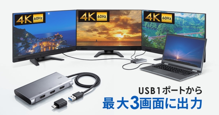 サンワサプライ株式会社(本社:岡山市北区田町1-10-1、代表取締役社長 山田和範)は、USBポートから最大3画面に4K映像を同時出力できるUSB-HDMIディスプレイアダプタ「USB-CVU3HD8」を発売しました。