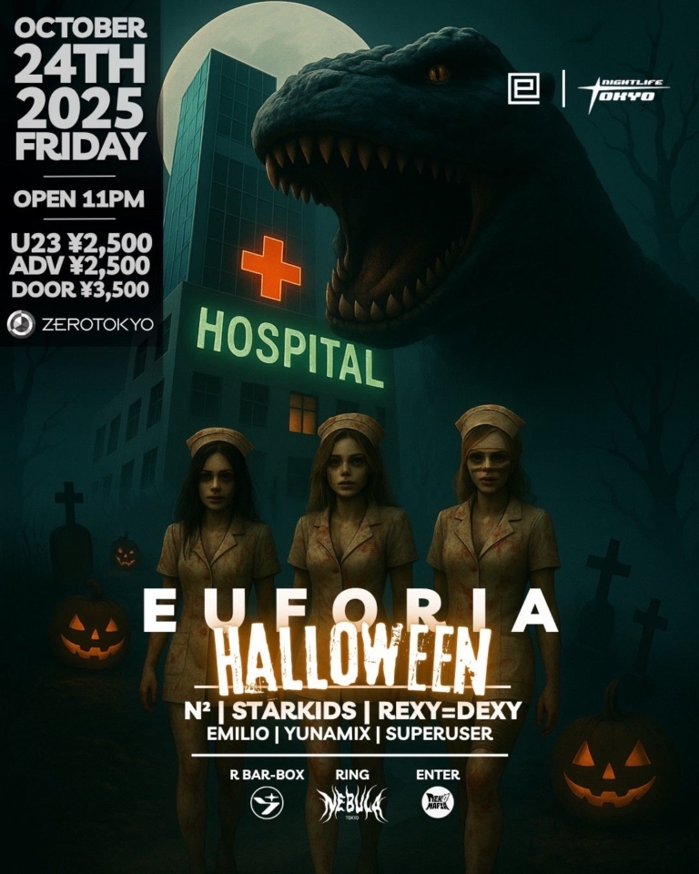【狂乱のハロウィン前夜】 ZEROTOKYOが恐怖の病院に!STARKIDS、REXY=DEXY、N²が集結し、終わりなきテクノの狂騒へ誘う「Haunted Hospital」開催!