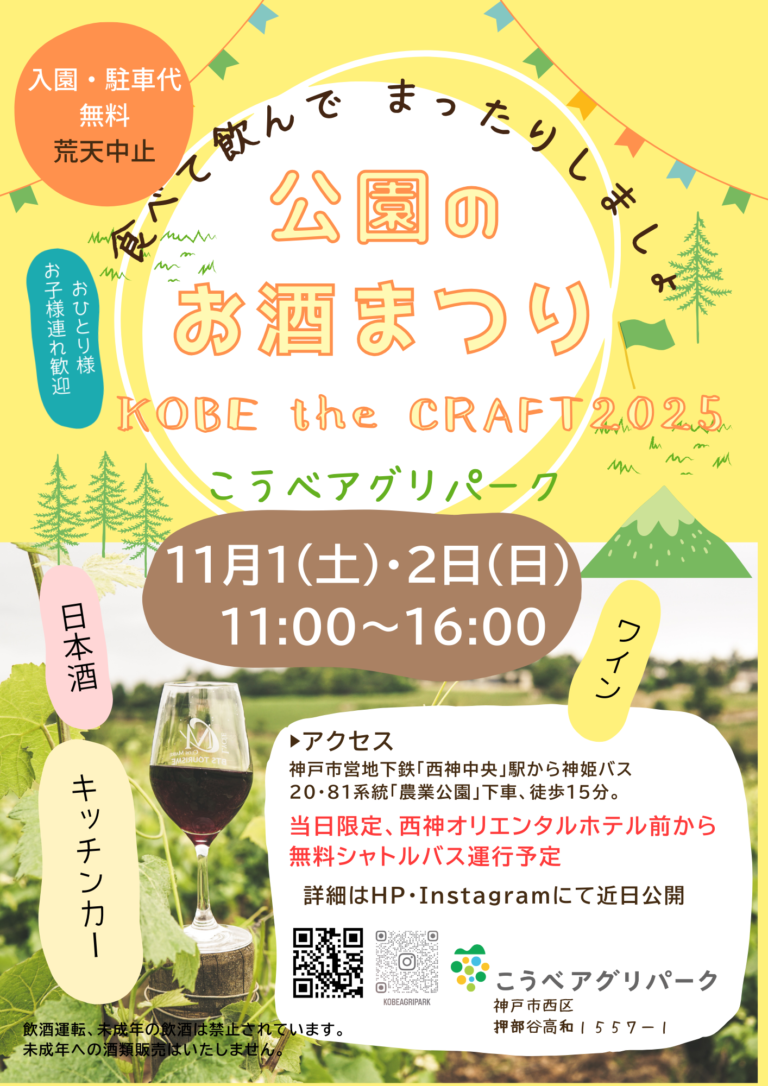 「公園のお酒まつりKOBE the CRAFT 2025」は、1990年からスタートしたこの地の賑わいを支える新酒まつりの伝統を倣いつつ、神戸里山SDGs戦略と響き合い、新たに2025年より開催します。人口100万人以上の政令指定都市でNo.1(農水省・令和5年市町村別農業産出額による算出)の農業産出額を…