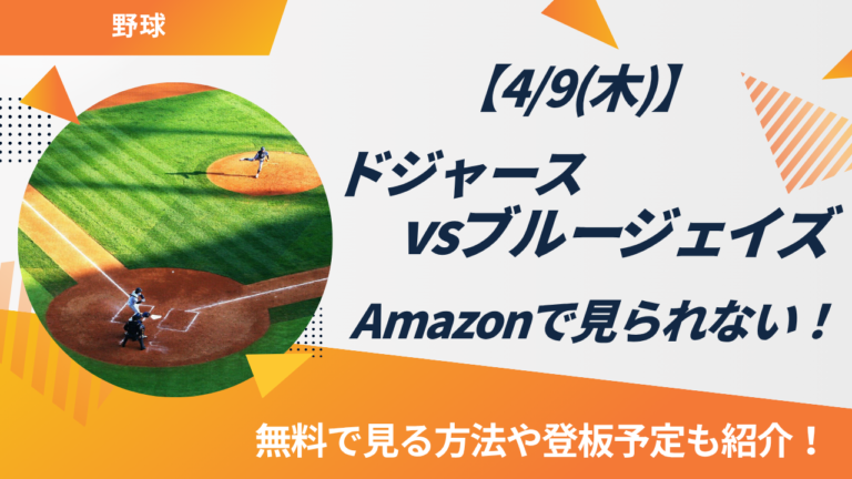 【4/9(木)】ドジャースvsブルージェイズはAmazonで見られない!無料で見る方法や登板予定も紹介!