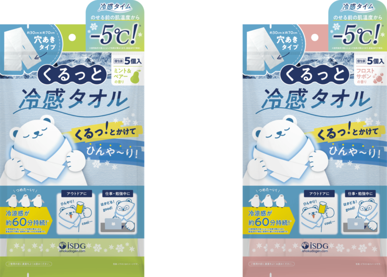 ISDG2026年3月16日より販売開始 健康食品、食品、衛生用品、化粧品等の製造、販売を行う株式会社医食同源ドットコム(本社:埼⽟県さいたま市、代表取締役:夏目洋司)は、リニューアルした首元を快適に冷やす『くるっと冷感タオル』(フロストサボン/ミント&ペアー)を全国のドラッグストア、ホームセンター、医食同源ドットコム公式通販サイトなどで2026年3月16日より販売開始いたします。 ※画像はイメージです。 ■商品特徴