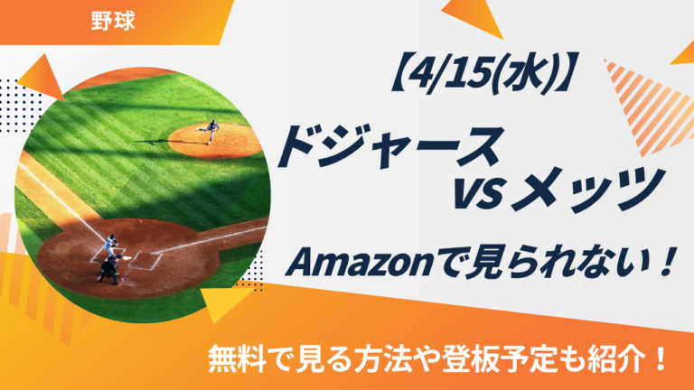 【4/15(水)】ドジャースvsメッツはAmazonで見られない!無料で見る方法や登板予定も紹介!