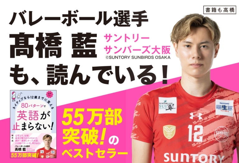 バレーボール選手 高橋藍(サントリーサンバーズ大阪)も、読んでいる!55万部突破のベストセラー『ネイティブなら12歳までに覚える 80パターンで英語が止まらない!』