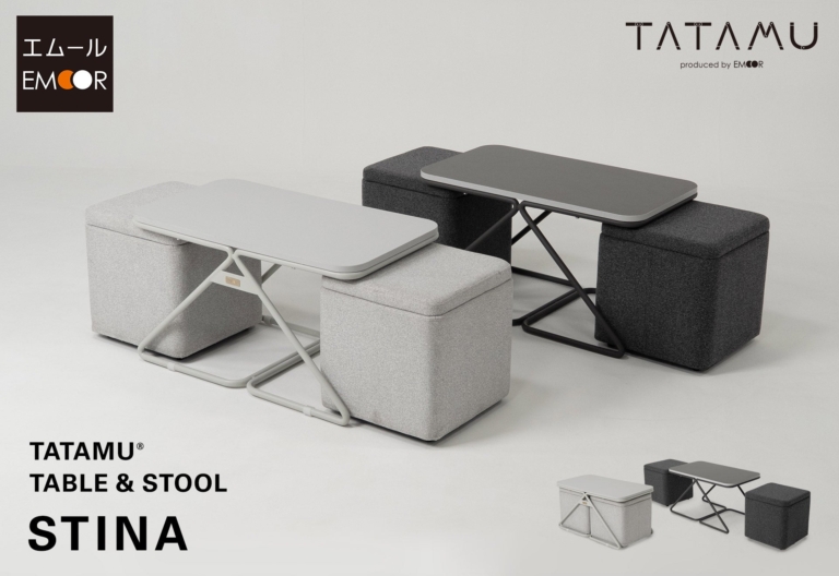 株式会社エムールトランスフォーム家具ブランドTATAMU(R)から、“しまう・座る・集まる”を一台で叶えるテーブル&スツール『STINA(スティナ)』が新発売。ホームユースだけでなくオフィスや店舗でもオススメです。 TABLE & STOOL STINA(スティナ)